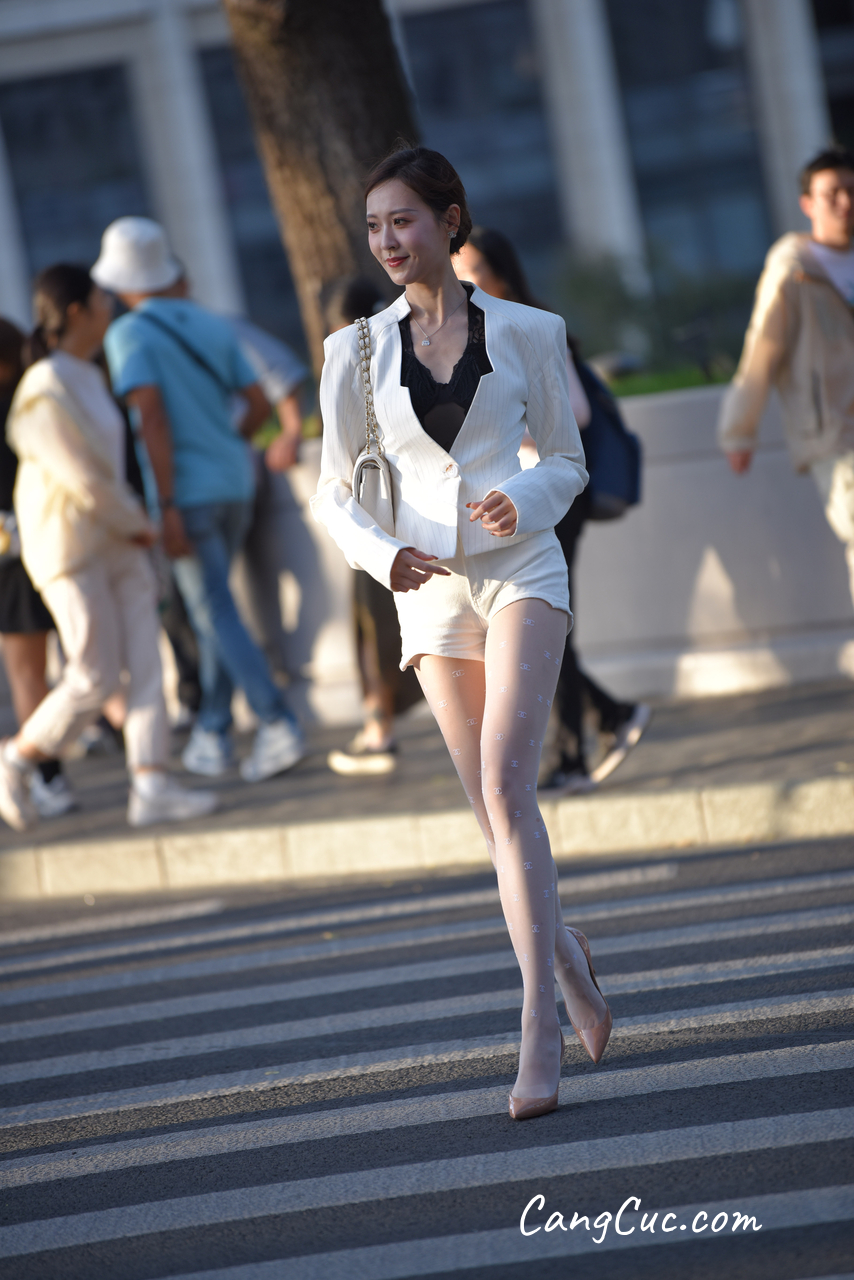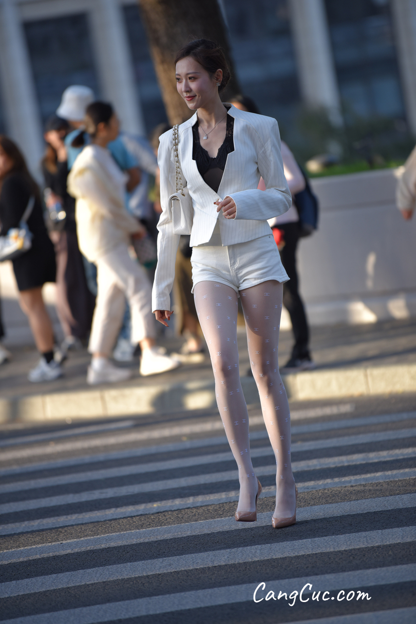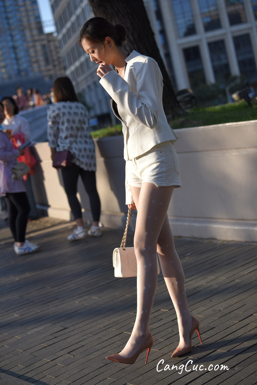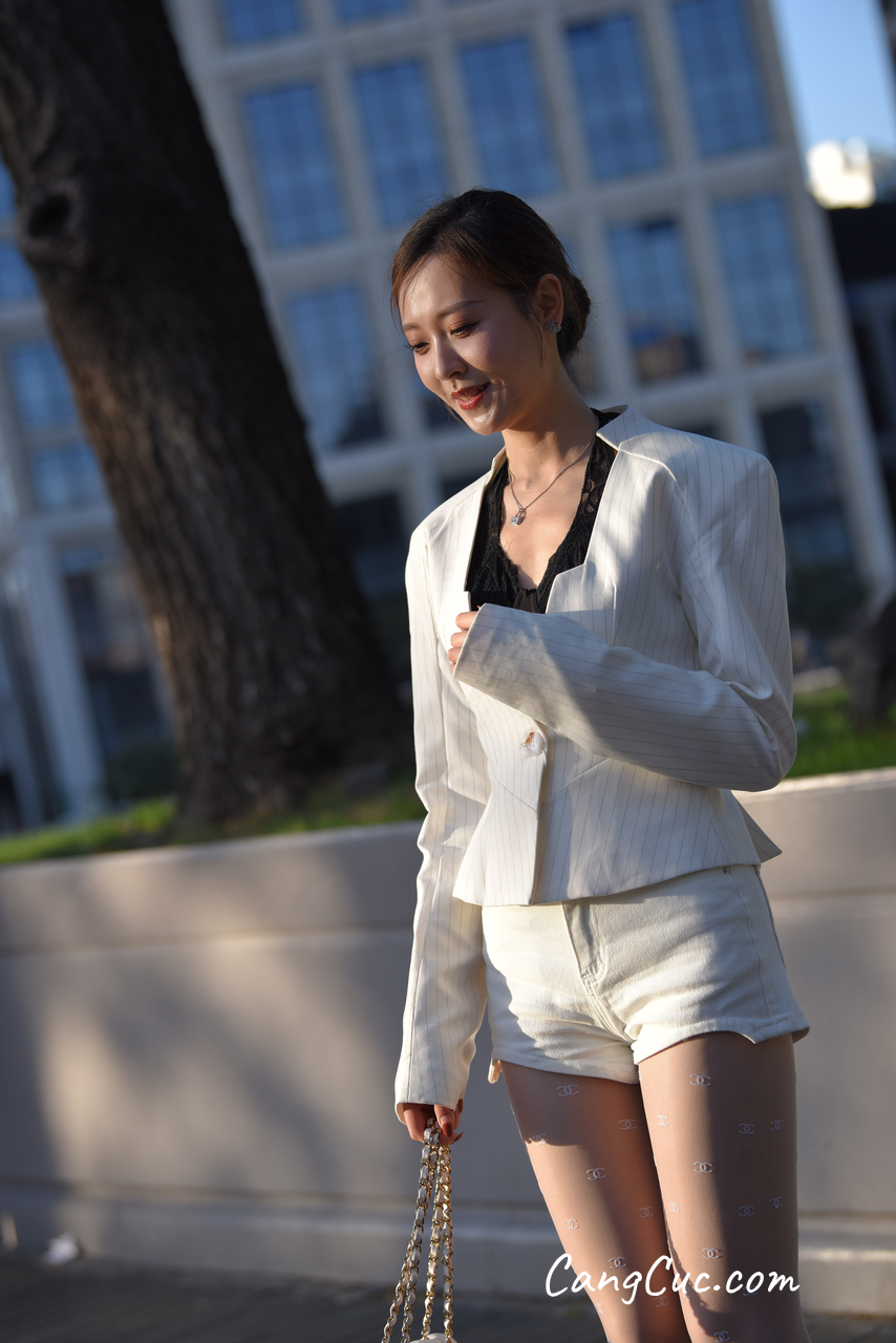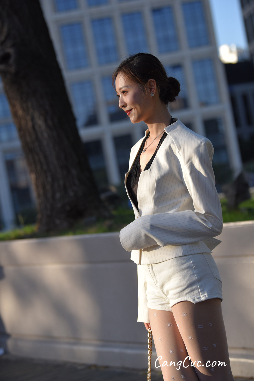 Watch sexy [精选街拍作品] No.3396 白色短裤套装 photos