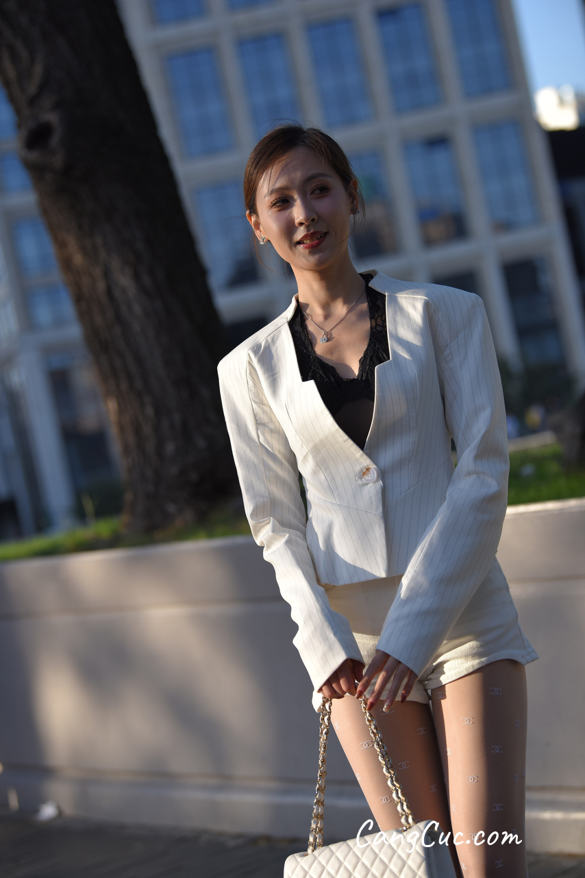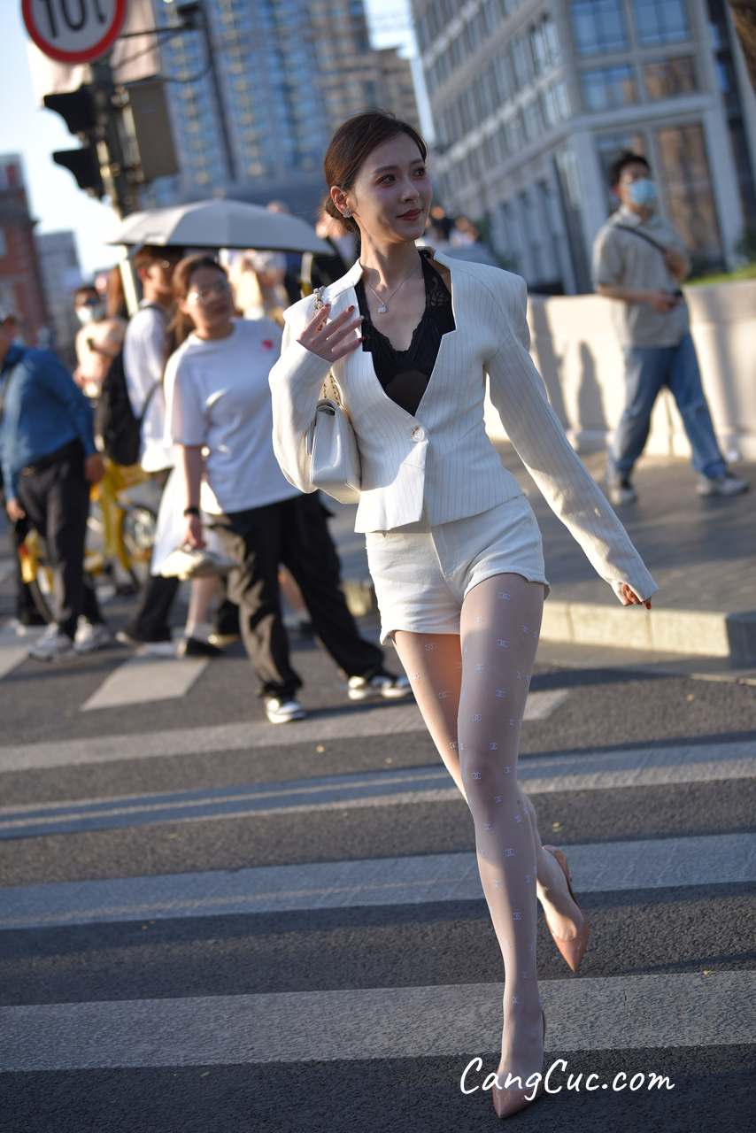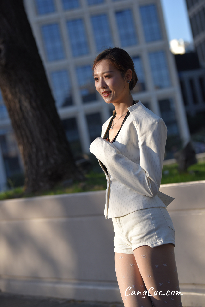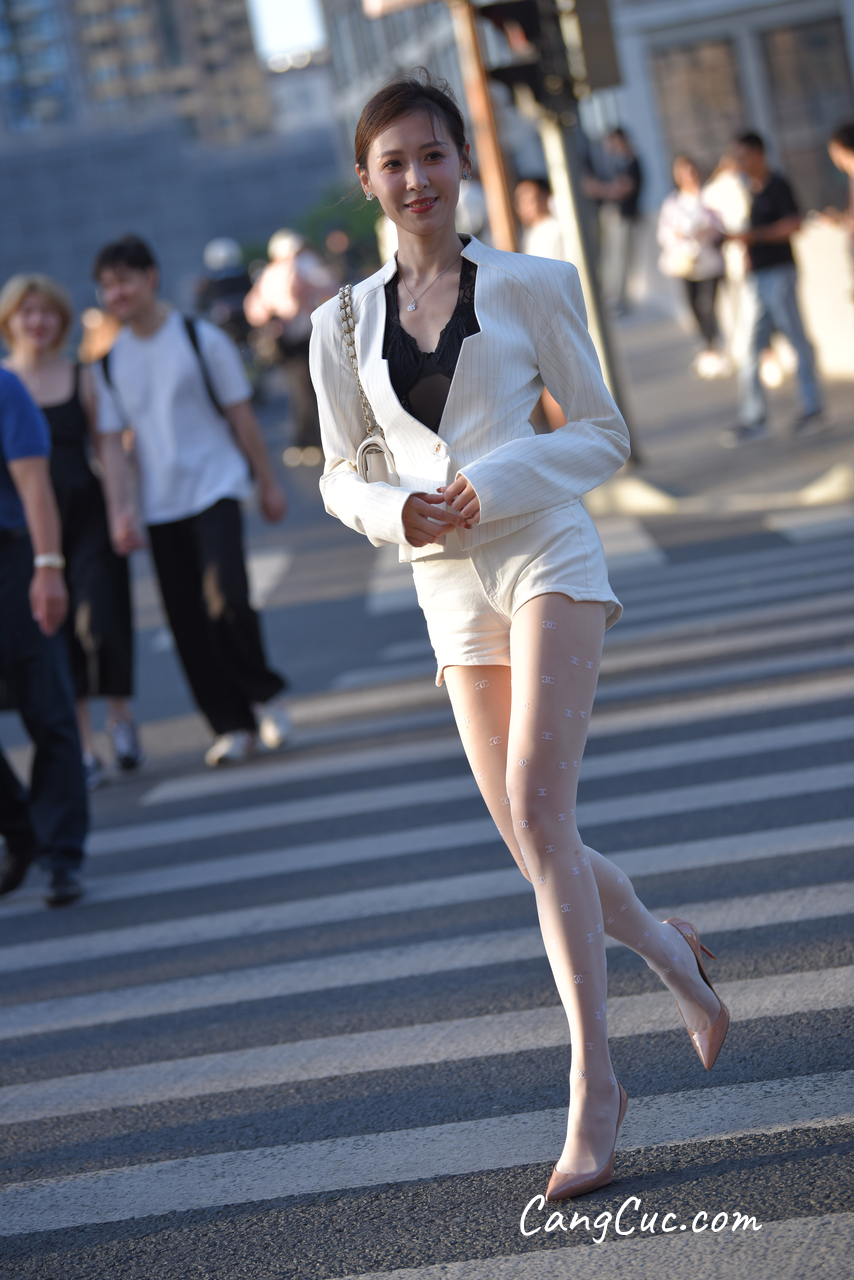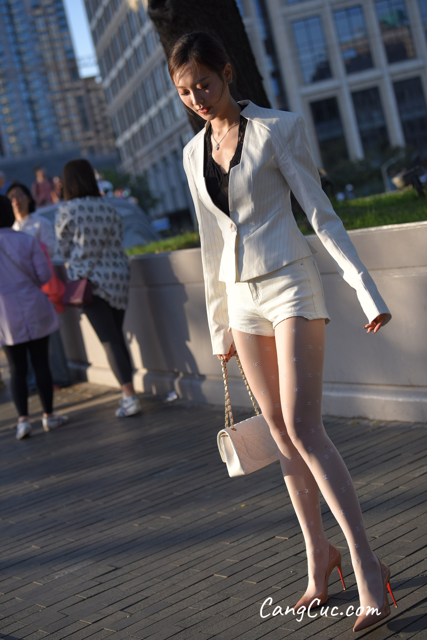 Watch sexy [精选街拍作品] No.3396 白色短裤套装 photos