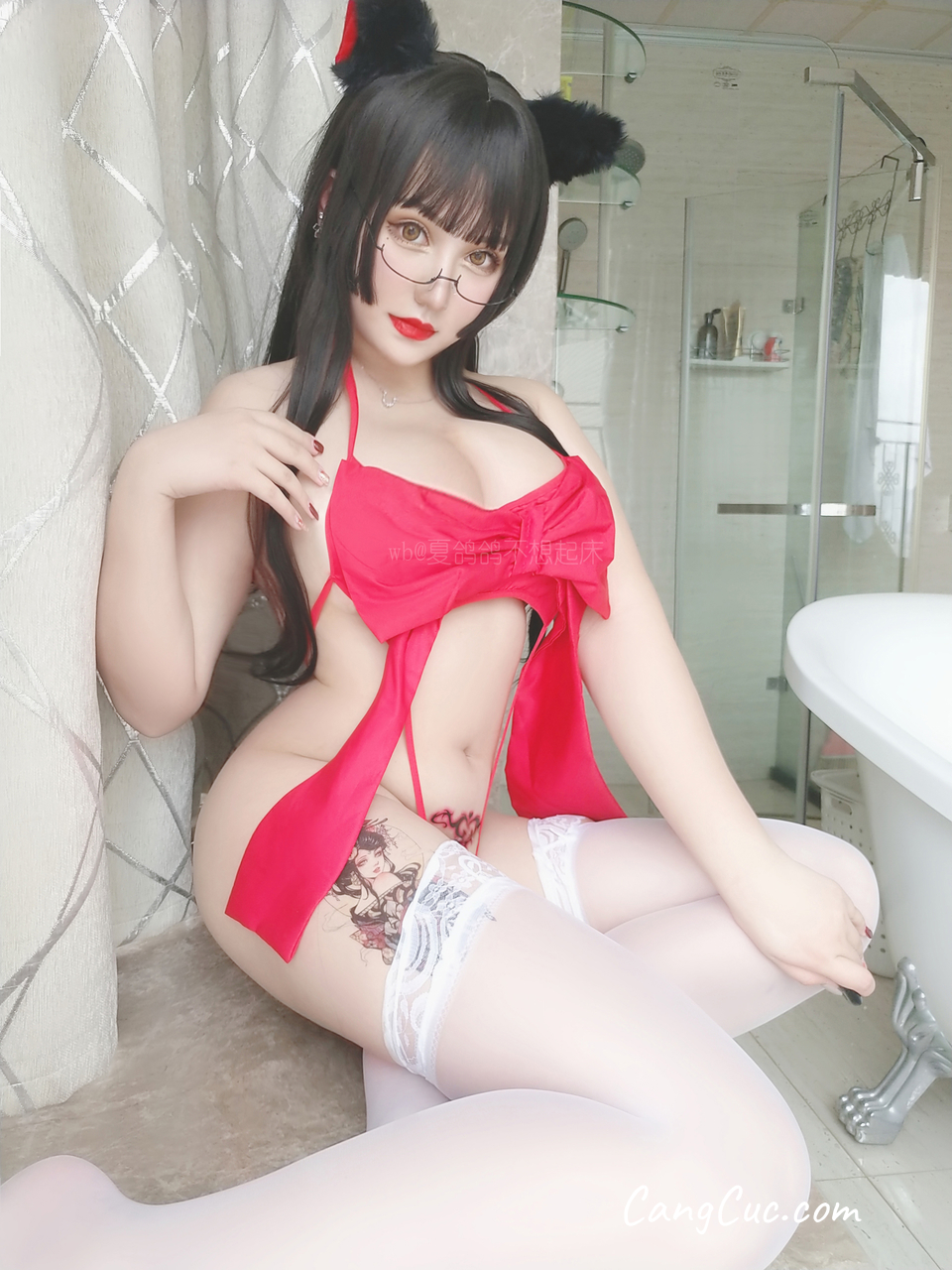 Watch sexy Coser@夏鸽鸽不想起床 Vol.012: 红丝带 photos