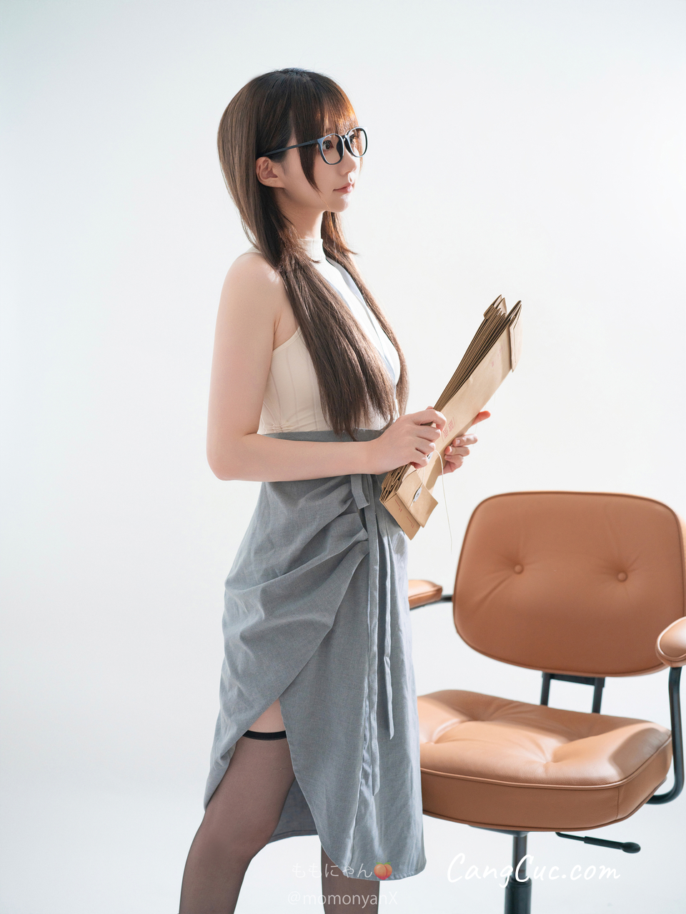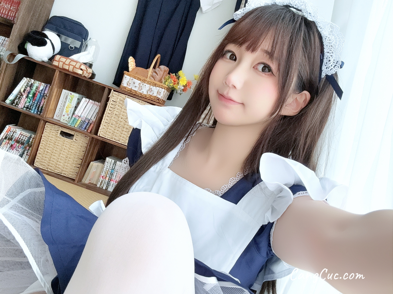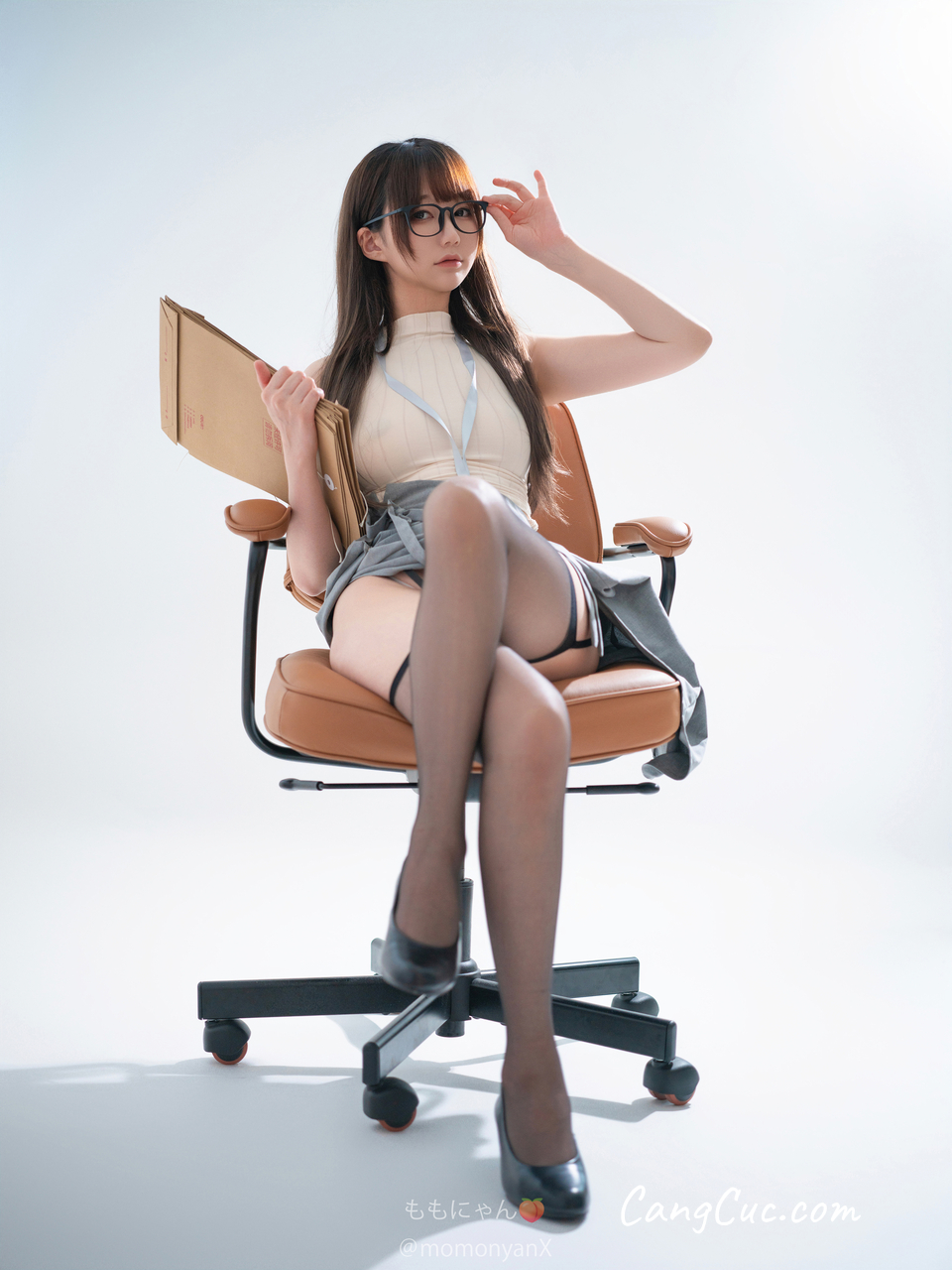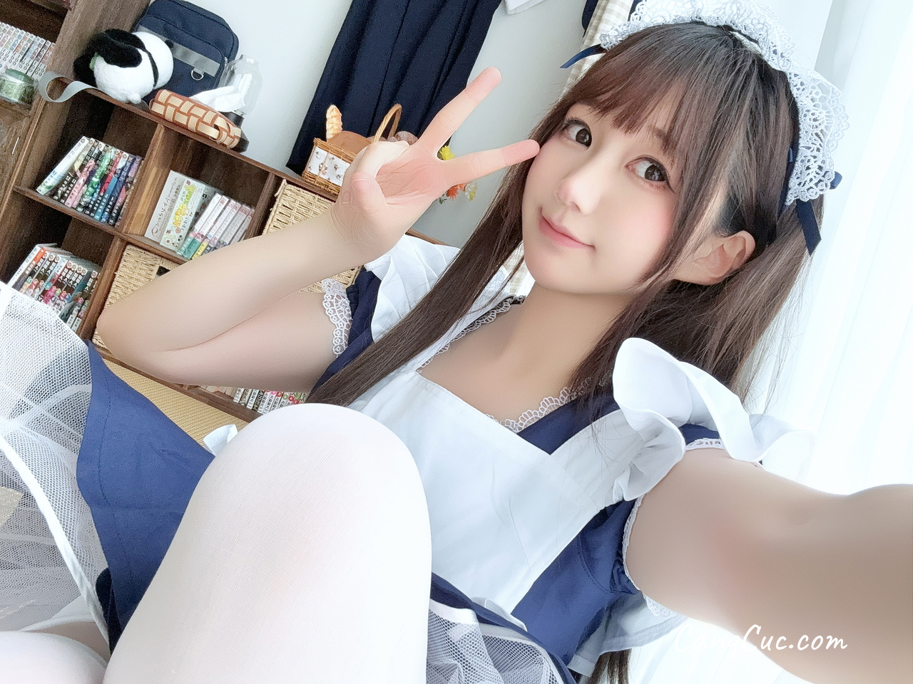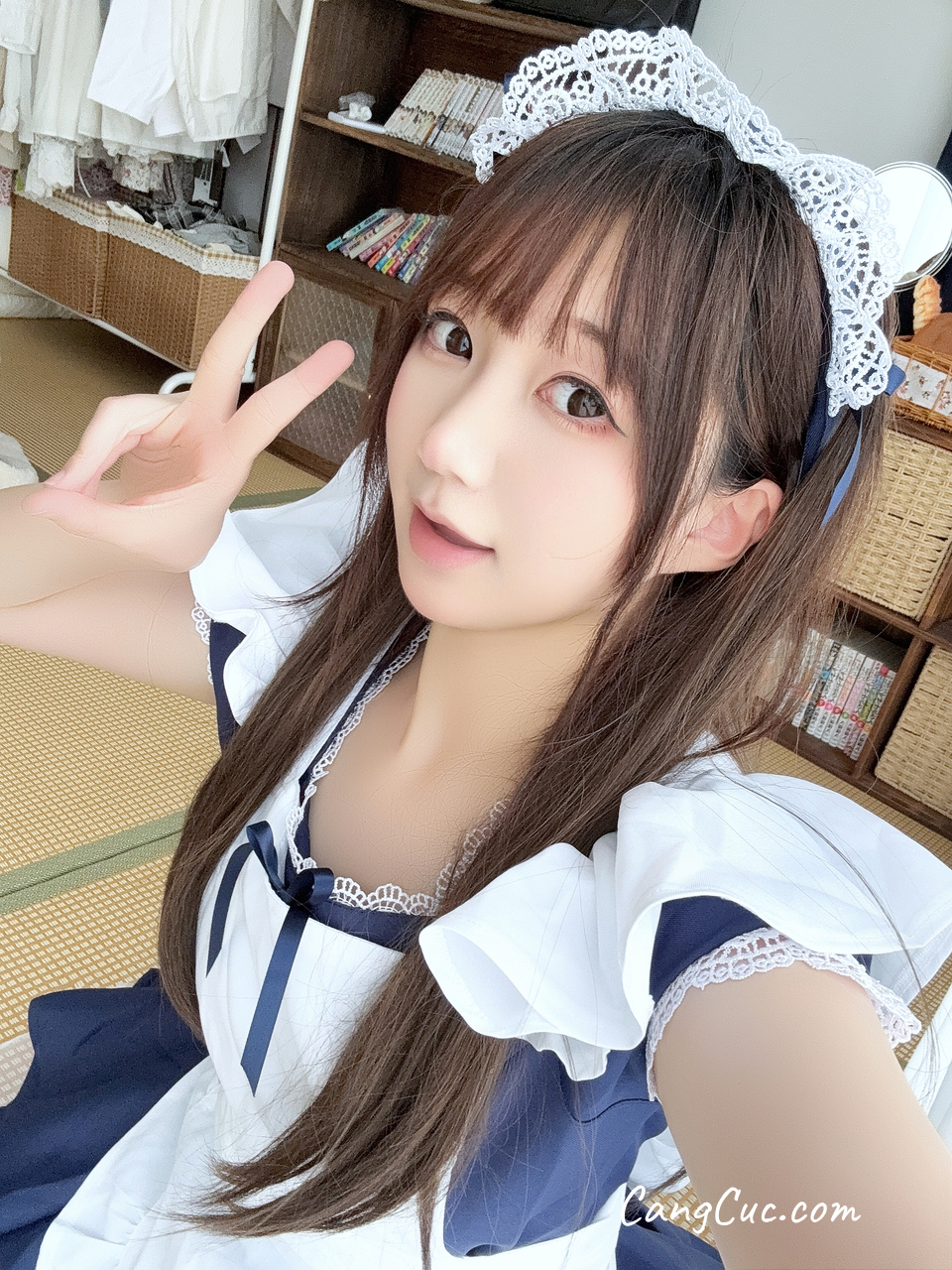 Coser@私人玩物 - 性感情趣深V吊带黑裙子